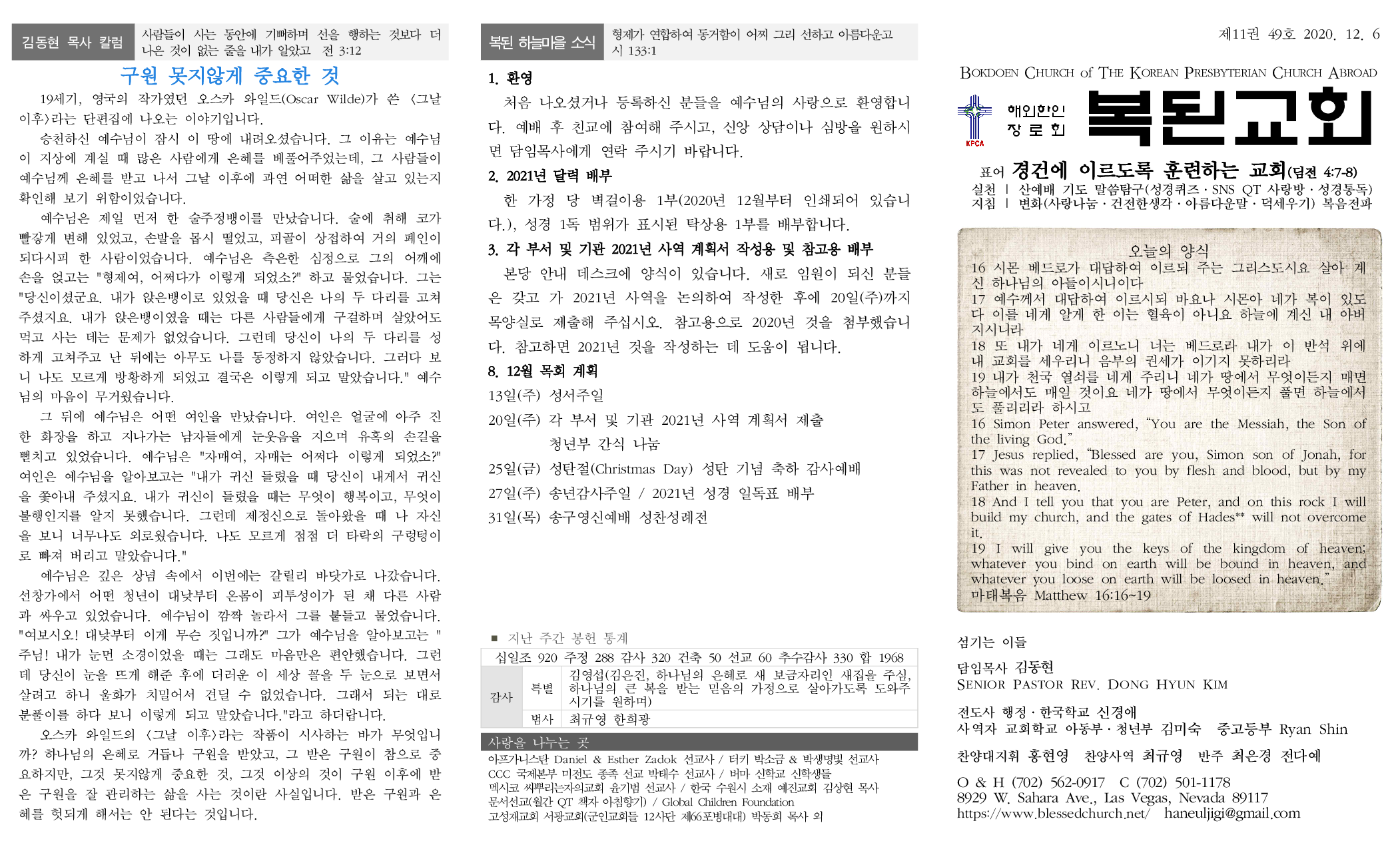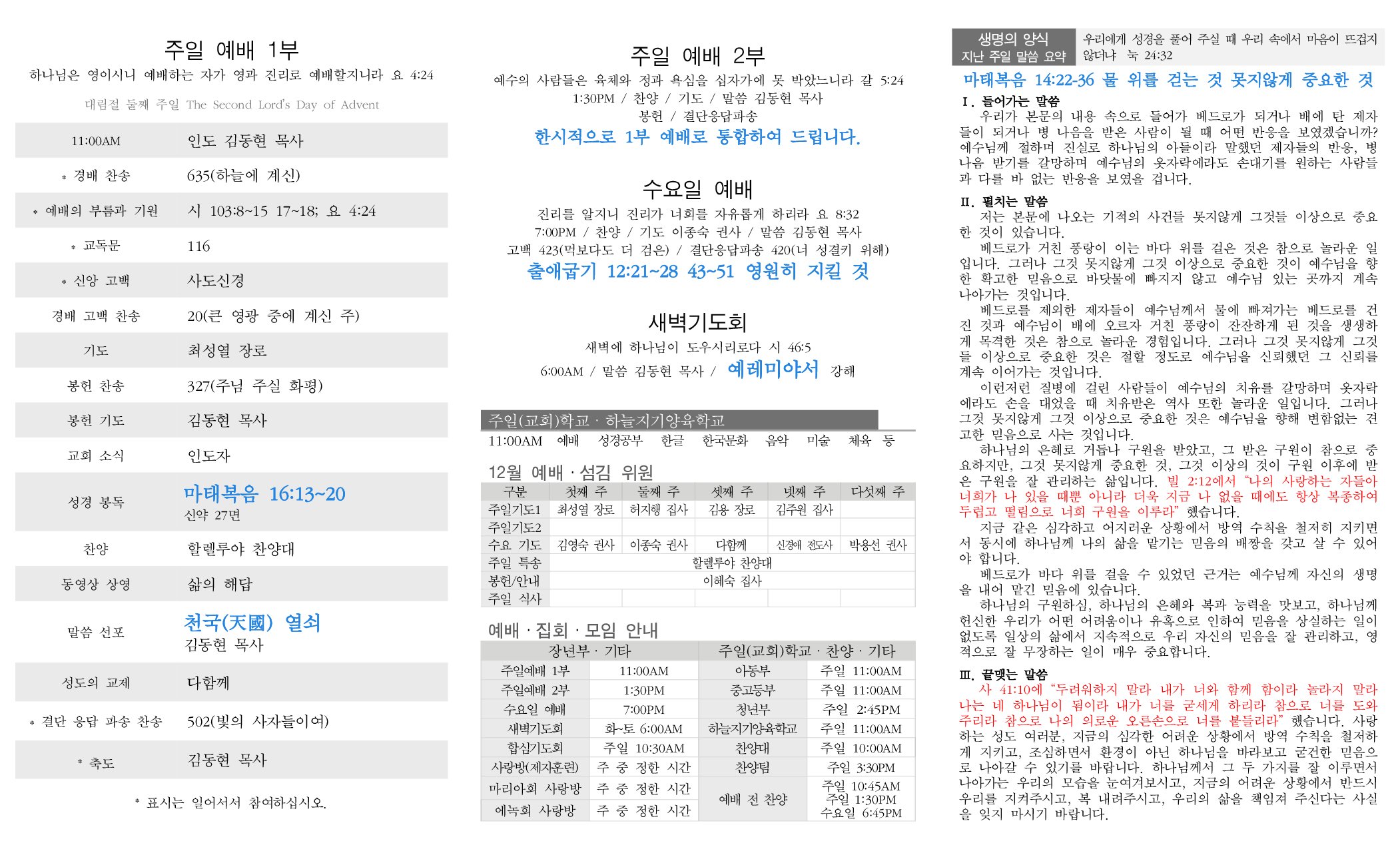 8. 12월 목회 계획