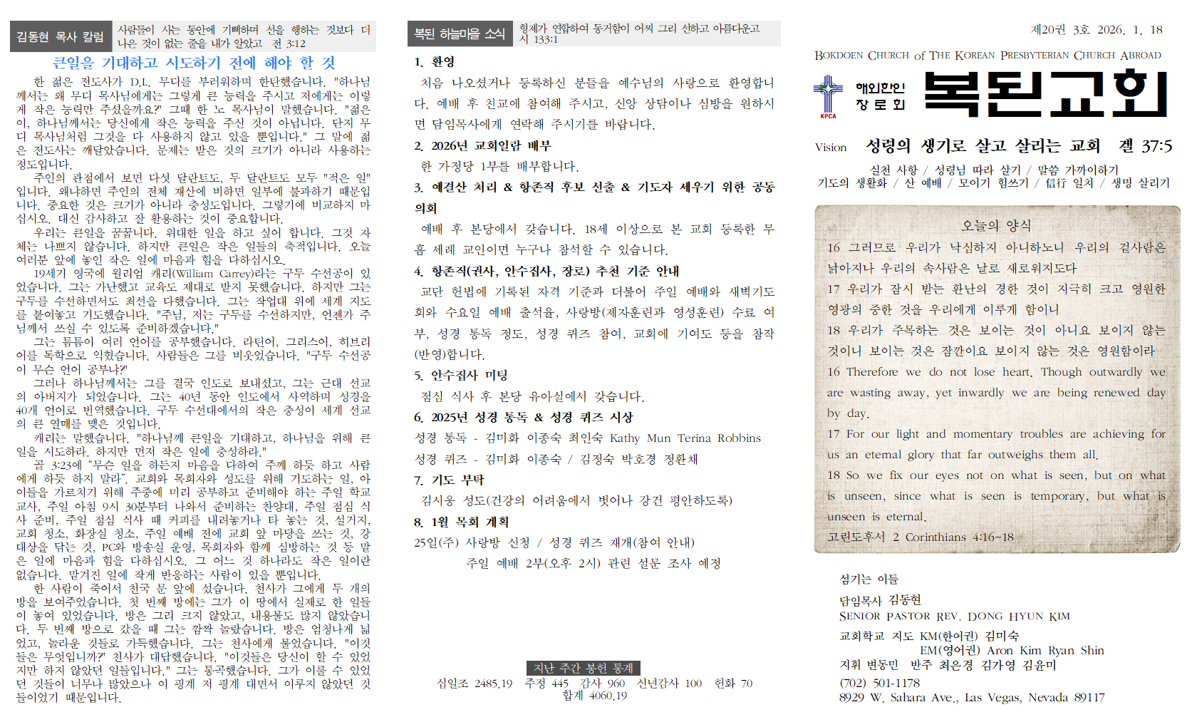 담임목사 칼럼 / 각 분야 중요한 것