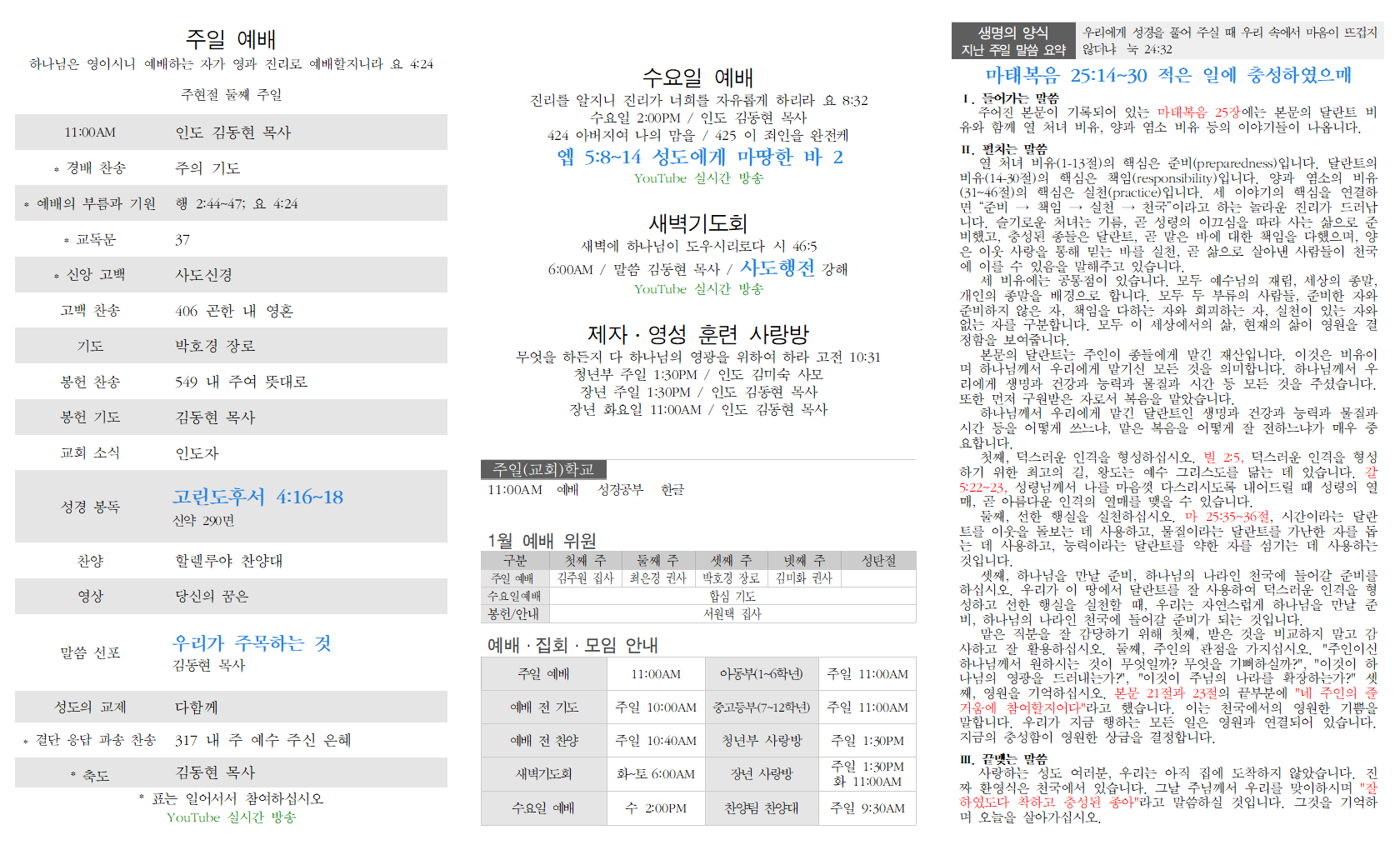 주일 예배 설교 새벽기도회 링크