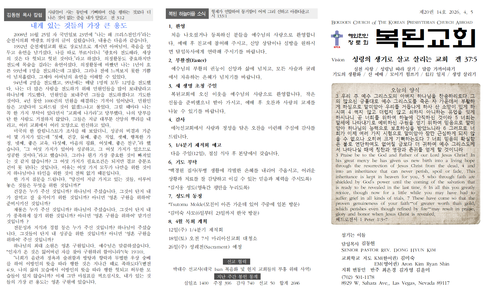 담임목사 칼럼 / 각 분야 중요한 것