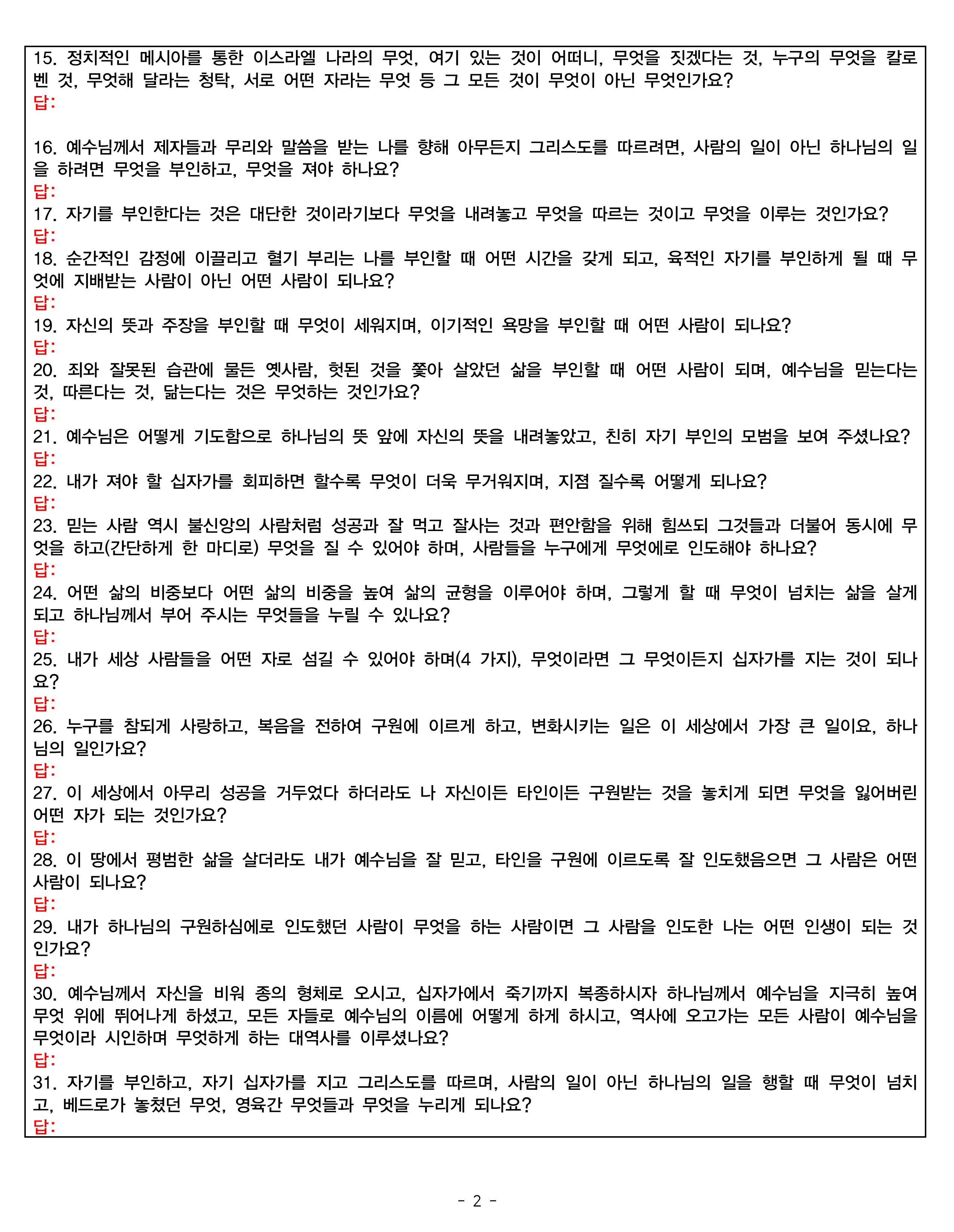 위 파일 다운로드를 클릭하면 설교 퀴즈를 보거나 다운로드 할 수 있습니다. 파일을 다운로드 후 인쇄하고 답을 작성하거나 아니면 문제를 보고 blank paper에 번호와 답을 적어 본당 안내 데스크에 제출하면 채점하여 정답지와 함께 묶어 배부합니다.