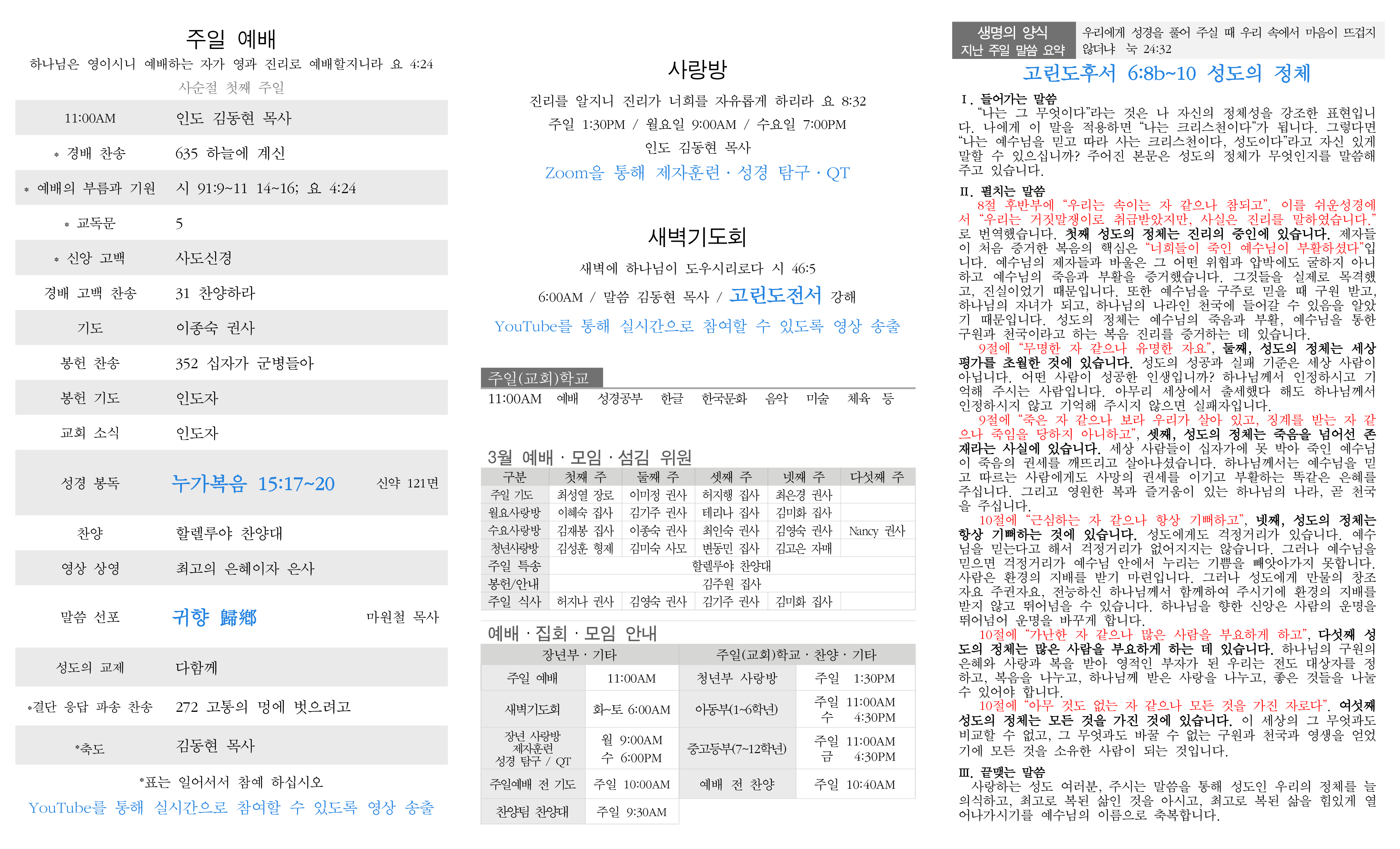 주일 예배 설교 새벽기도회 링크