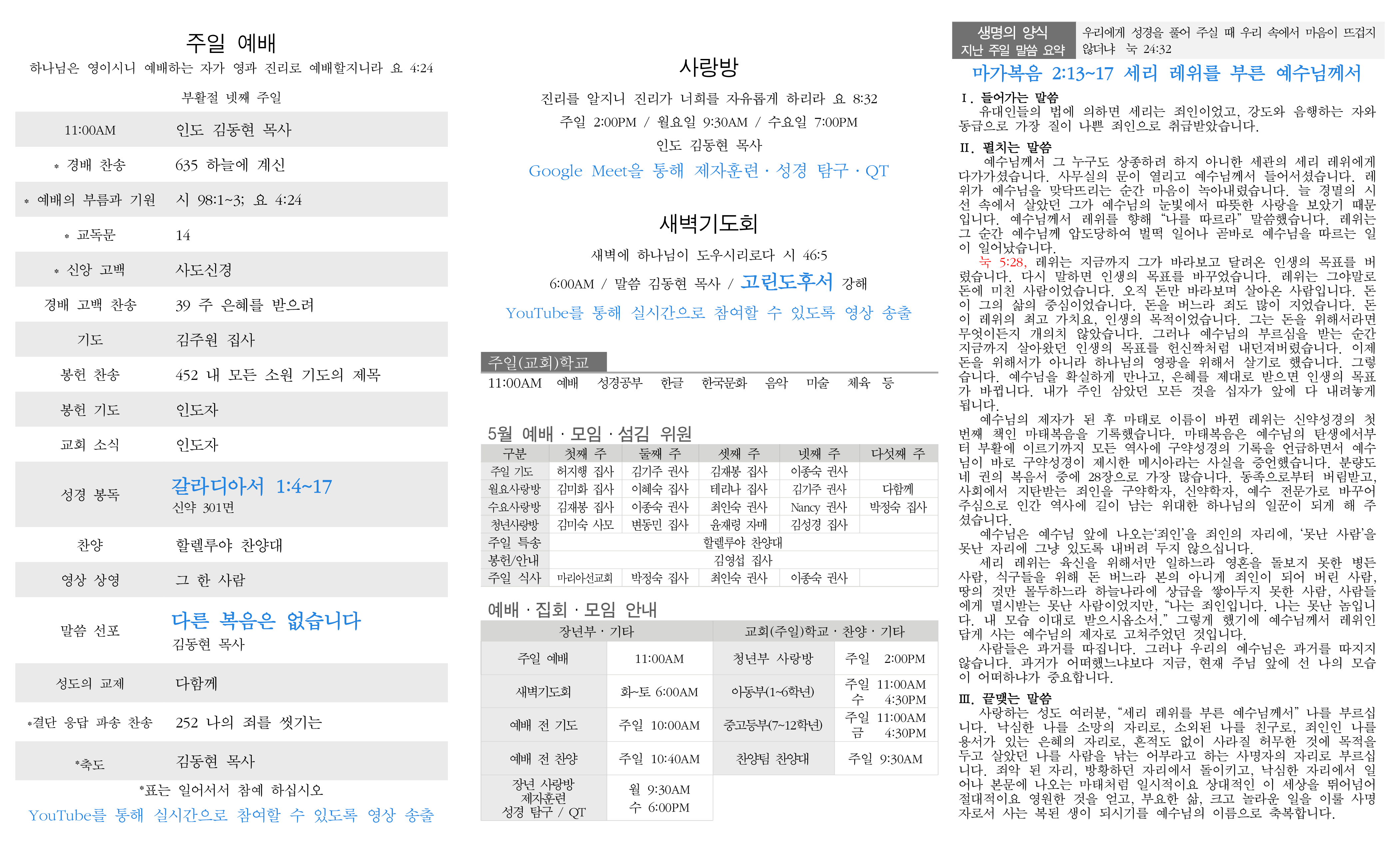 주일 예배 설교 새벽기도회 링크