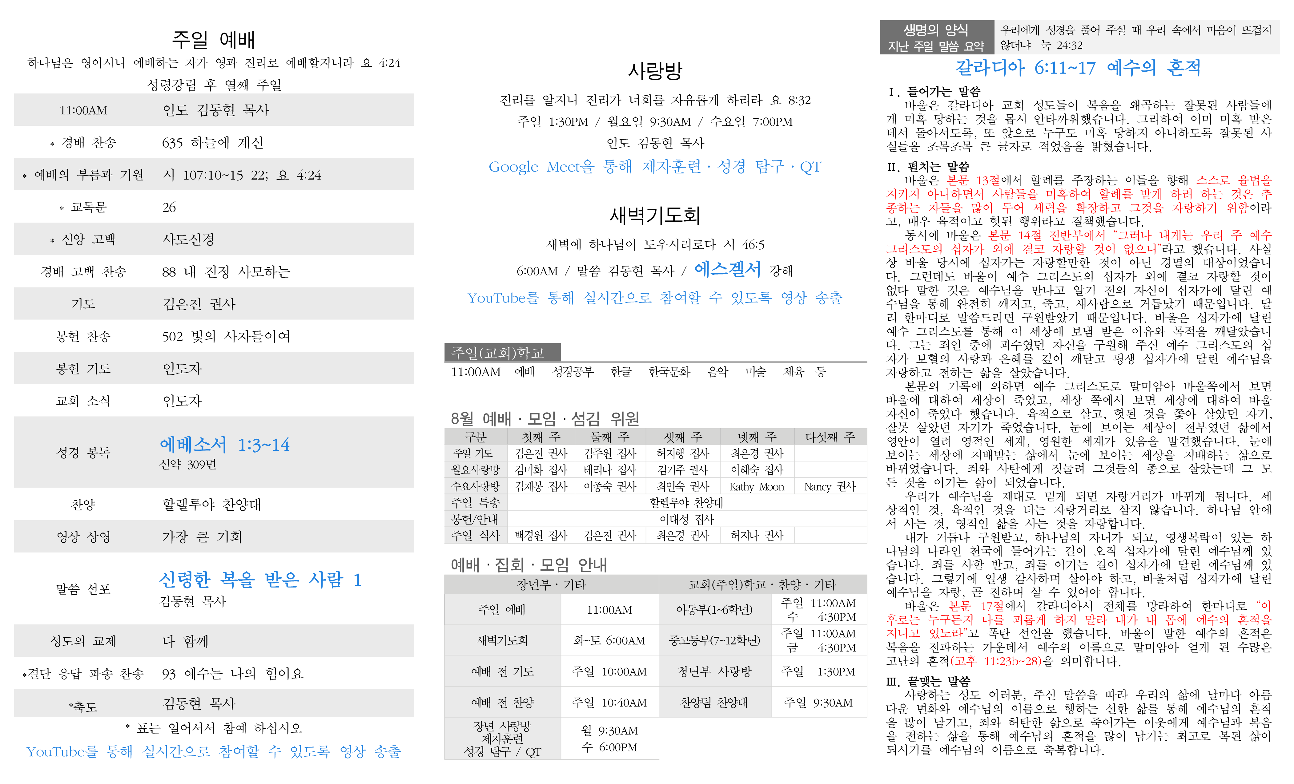 주일 예배 설교 새벽기도회 링크