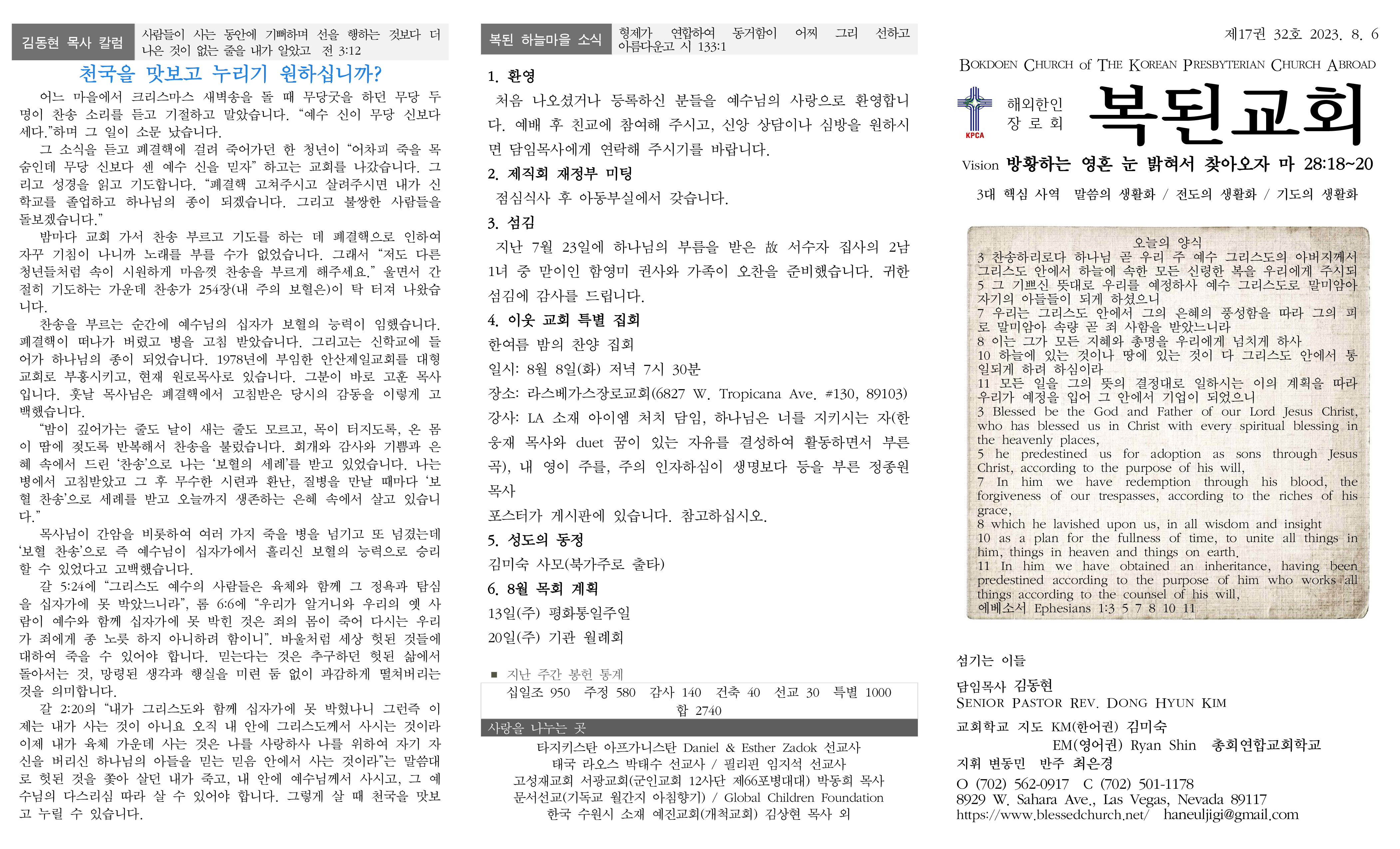 2023년 8월 6일 주일